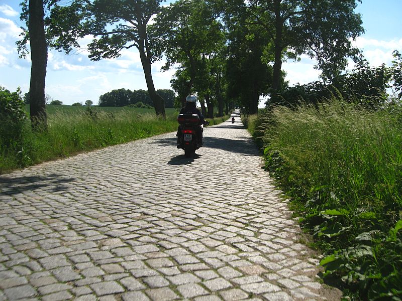 Die ca 4 km lange Straße mit Kopfsteinpflaster hat unsere Motorräder ganz schön hergenommen.